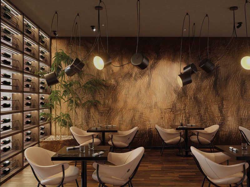 Barricaia evokuje ticho a pomalý rytmus sklepů, kde víno zraje v dubových sudech. Dekorativní efekt přímo vychází z této představy: povrchy, vrstvené glazurami v tónech stejné barvy a jasnými akcenty, abstraktně přetvářejí stopy, které zanechává červené víno uvnitř barikových sudů.