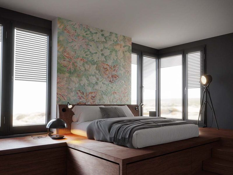 Výsledkem je stěna s uvolněným, meditativním charakterem, ideální pro intimní a sofistikované prostory, která dokáže elegantně doplnit nejrůznější styly interiérů.