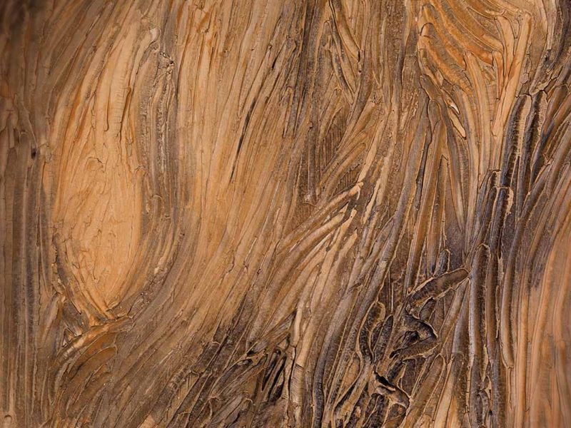 Dekorativní vzor Corteccia je charakteristický podélnými rýhami a nepravidelnými reliéfy, které vyvolávají intenzivní hmatový a emocionální zážitek. Tato estetika zachycuje poetiku krajiny vytvarované větrem a měkkým světlem, typickou pro kopce porostlé vinnou révou v oblasti Alta Maremma.