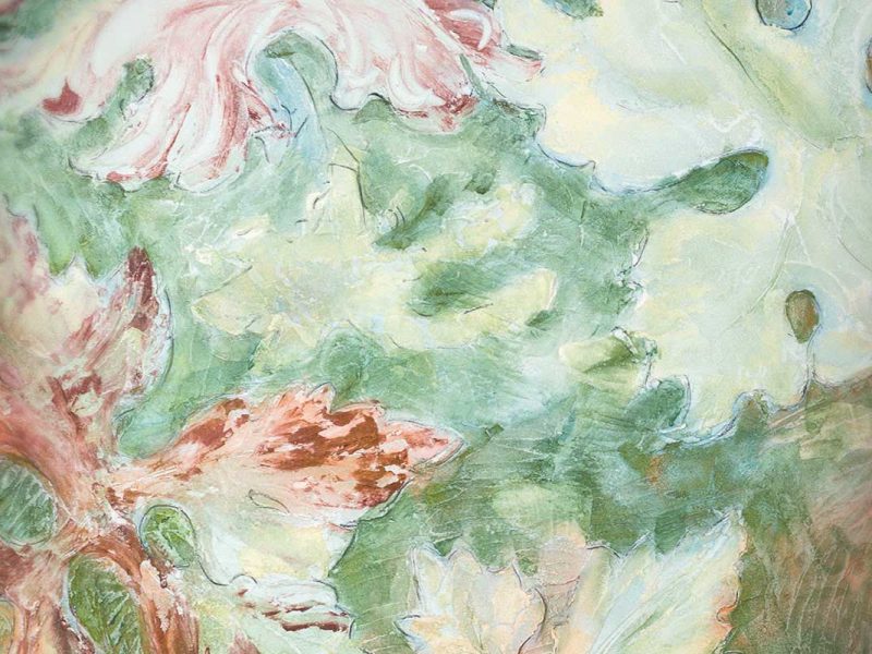 Dekorativní povrchová úprava stěn Foliage d’Autore vnáší na kreativní plochu stěny vizionářské kouzlo kultivované džungle.