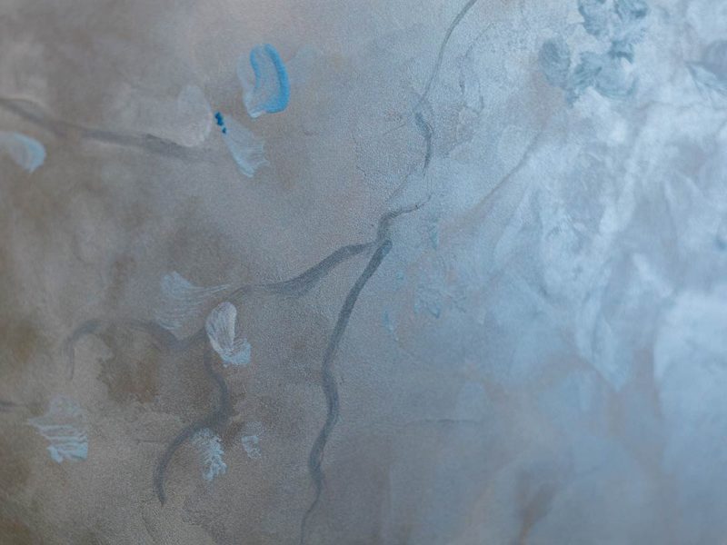 Měnící se scenografie, která – v závislosti na úhlu dopadu světla a barevné paletě – vibruje v různých odstínech od růžové po modrou, přes teplé lískooříškové tóny, proložené zlatými nebo perleťovými nádechy.